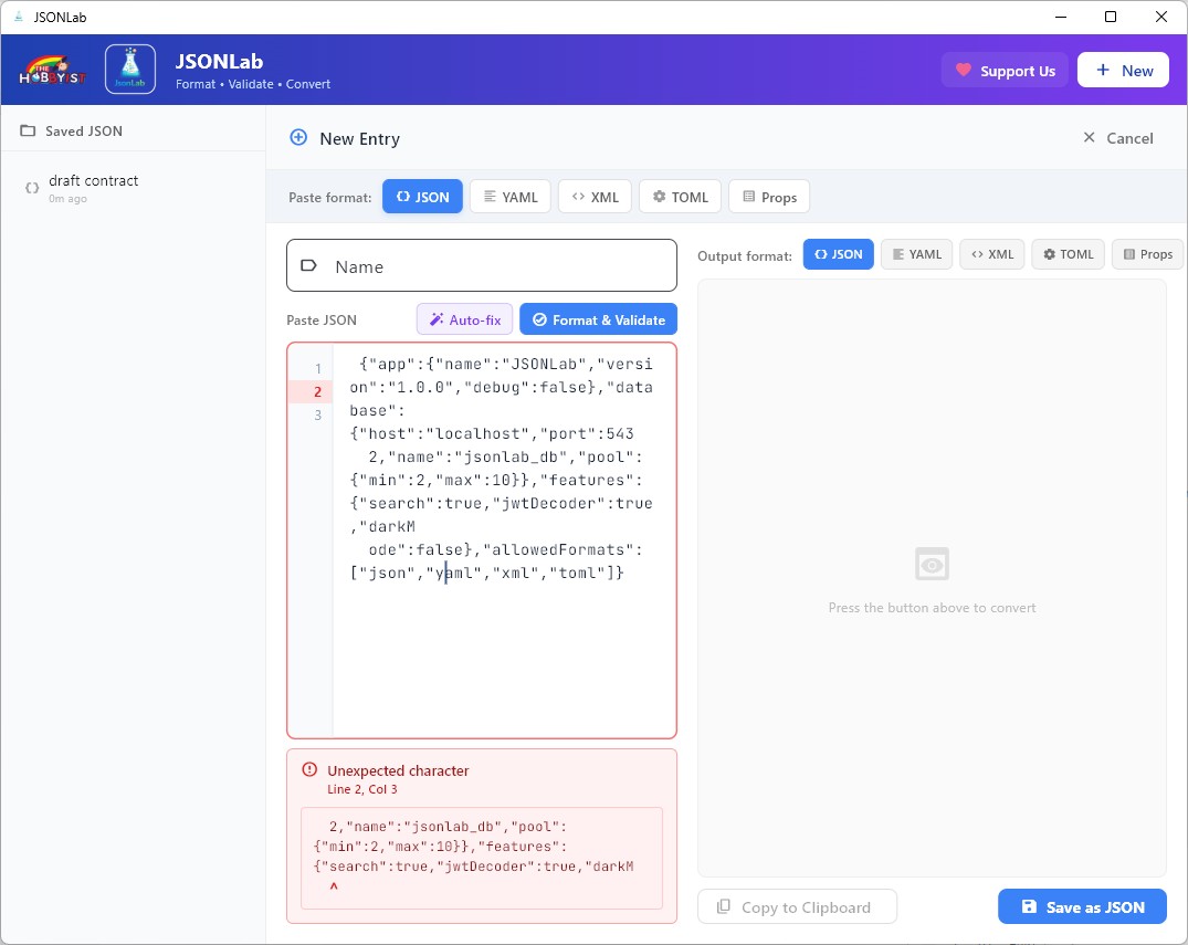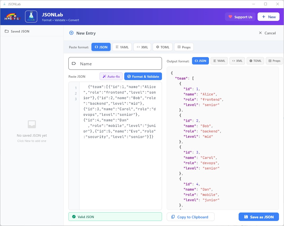 From quick formatting to deep format conversion — JSONLab handles it without any setup, login, or internet connection.